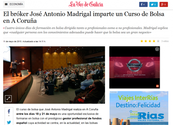 Te ofrecemos realizar un publirreportaje sobre tu empresa, producto o evento. Saldrá publicado durante 24 horas en la edición digital de La Voz de Galicia, medio de comunicación líder en la Comunidad gallega y noveno a nivel nacional con más de 6 millones de usuarios únicos. No dejes pasar la oportunidad de dar visibilidad a tu proyecto.