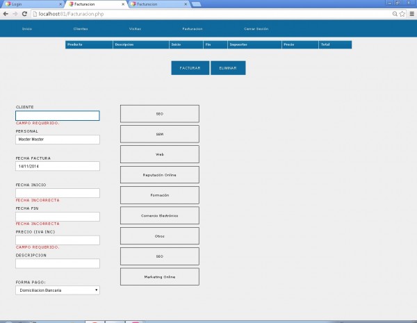 Software a medida fácil de utilizar con posibilidad de ajustarse a sus necesidades Gestiona tus visitas, control de lo que realiza cada empleado Control de clientes por zonas Avisos de todo lo que pase en tu empresa Acceso a través de la nube con cualquier dispositivo y sistema que tenga conexión a internet, permite anotar la visita, dar de alta a clientes y gestionar los productos Imprescindible si eres una empresa que trabaja con SEO, SEM, Marketing Online,Reputación Online DESDE 1210€